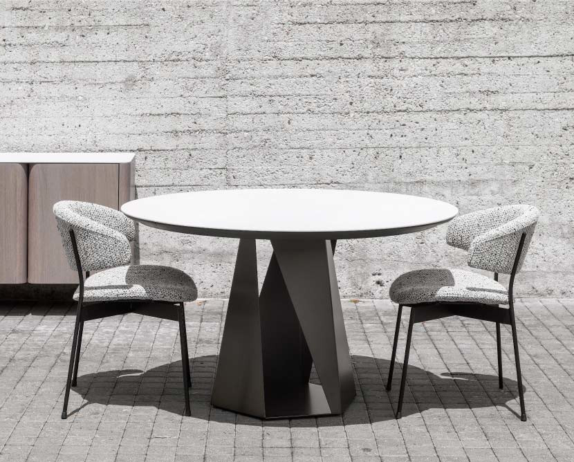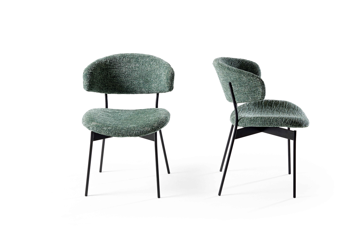 Καρέκλα με μεταλλική βάση η οποία βάφεται σε διάφορα χρώματα και ντύνεται με ύφασμα της επιλογής σας.