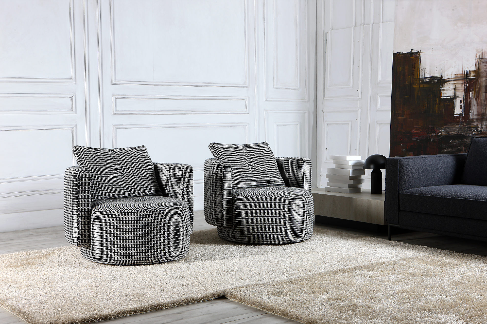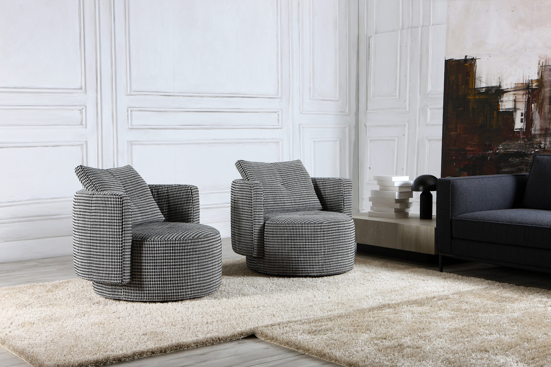 Κατασκευάζεται με ή χωρίς περιστροφική βάση, με ύφασμα που αφαιρείται πλήρως για εύκολο καθαρισμό ή αντικατάσταση.
