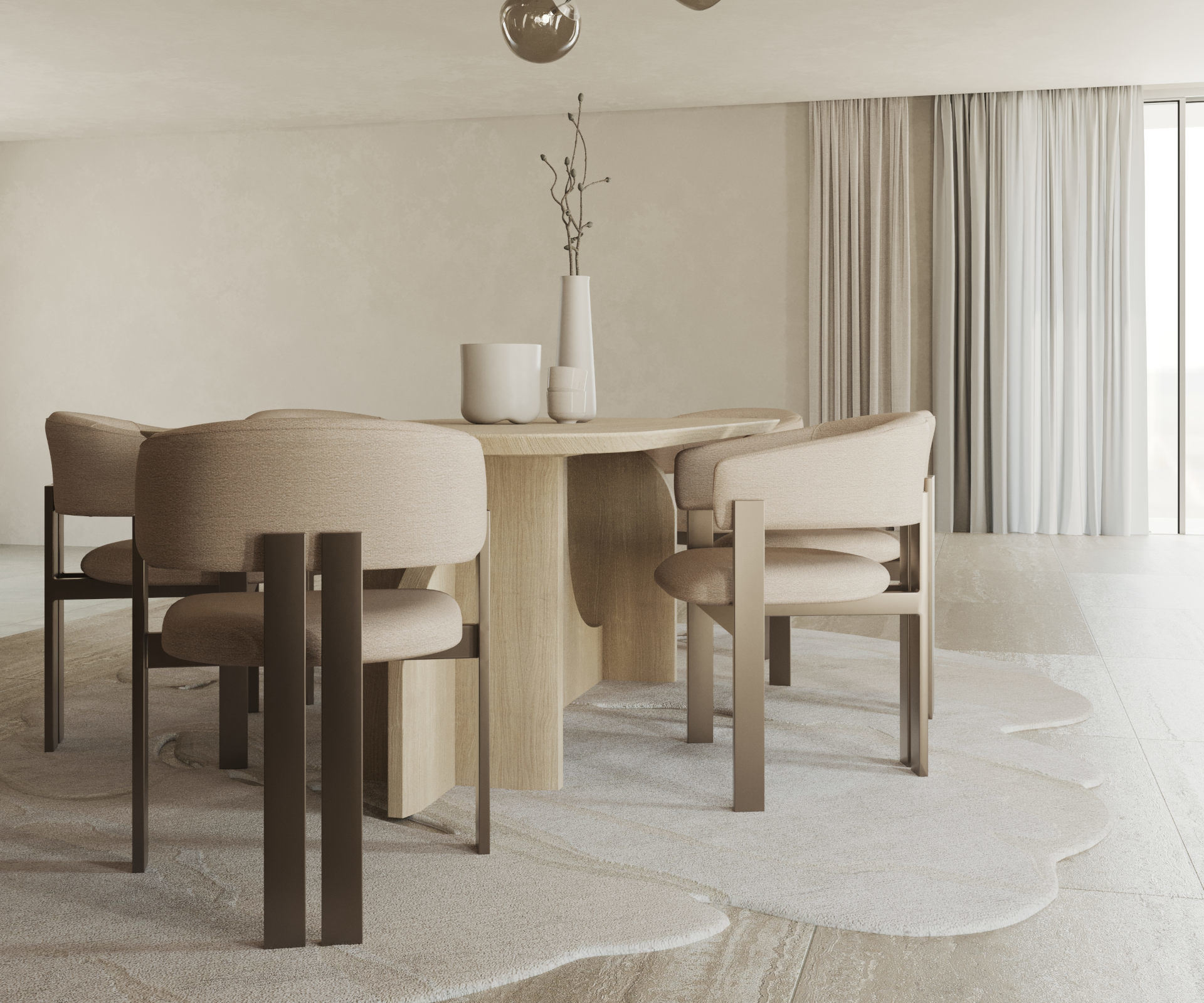 Η εντυπωσιακή τραπεζαρία Odylia, με 2 βάσεις σε μοντέρνα αισθητική. Κατασκευάζεται σε διάφορες διαστάσεις και χρωματισμούς της επιλογης σας, με δυνατότητα επίσης για καπάκι κεραμικό ή ξύλινο δρύς.